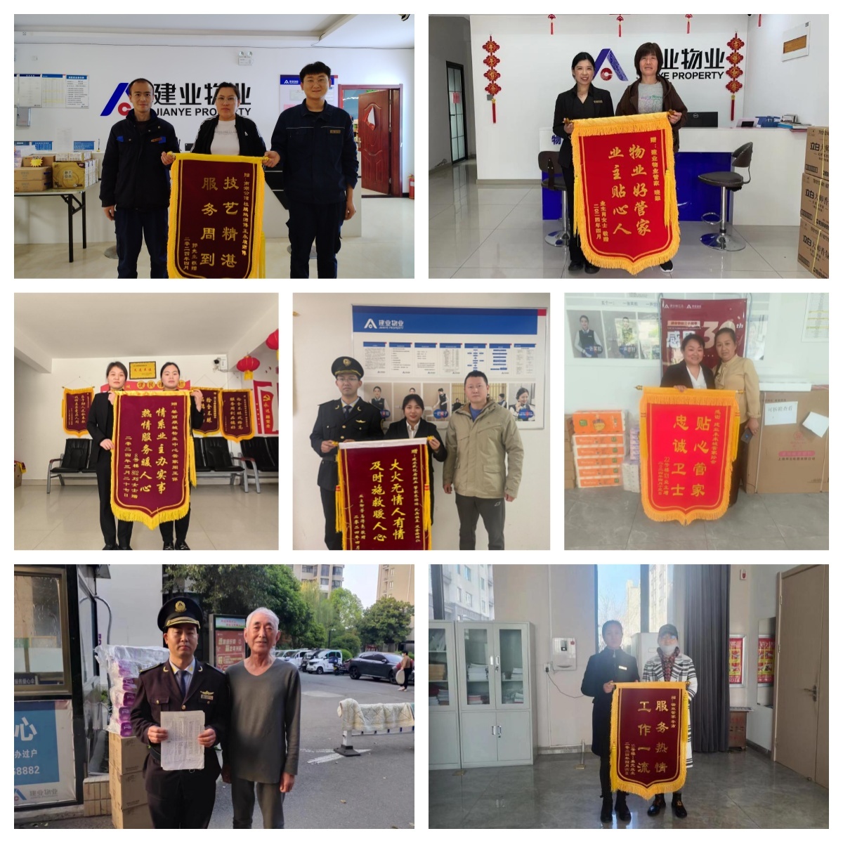 4月,建業(yè)物業(yè)在管園區(qū)共涌現(xiàn)出好人好事852件,其中錦旗229面、感謝信87封、致電表?yè)P(yáng)525次。