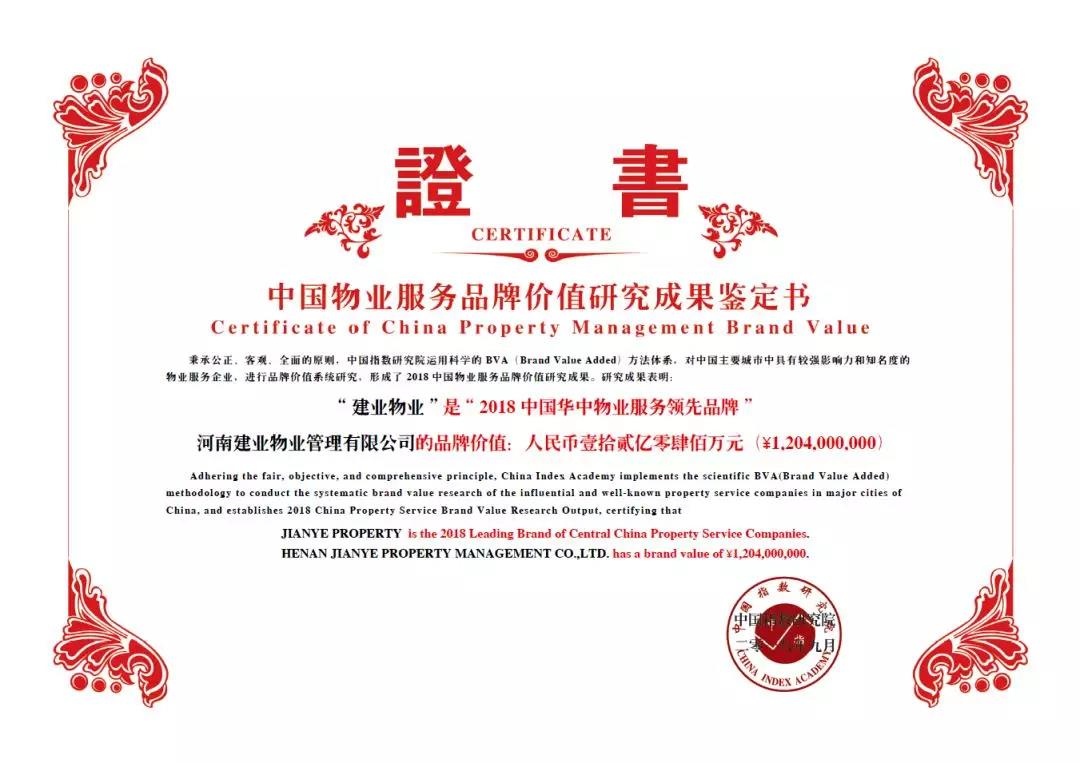 9月19日下午,2018中國(guó)房地產(chǎn)品牌價(jià)值研究成果發(fā)布會(huì)暨第十三屆中國(guó)房地產(chǎn)品牌發(fā)展高峰論壇在北京雁棲湖國(guó)際會(huì)議中心一層鴻雁廳隆重舉行,此次發(fā)布會(huì)由國(guó)務(wù)院發(fā)展研究中心企業(yè)研究所、清華大學(xué)房地產(chǎn)研究所和中國(guó)指數(shù)研究院三家研究機(jī)構(gòu)共同組成的“中國(guó)房地產(chǎn)TOP10研究組”主辦。發(fā)布會(huì)上,作為中原人居服務(wù)水平引領(lǐng)者,河南建業(yè)物業(yè)管理有限公司獲得“2018中國(guó)華中物業(yè)服務(wù)領(lǐng)先品牌”殊榮。