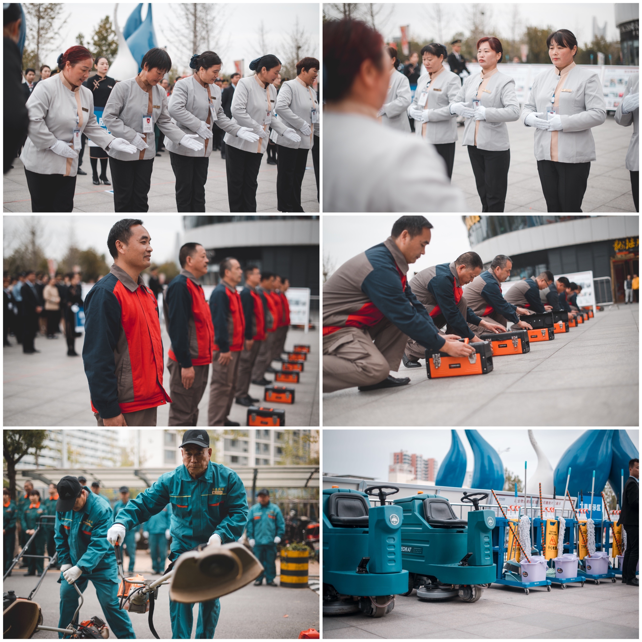 隨后,南陽區(qū)域2019年基礎(chǔ)服務(wù)大比武復(fù)賽正式開始!來自建業(yè)物業(yè)南陽區(qū)域各片區(qū)、經(jīng)過層層選拔出來的客服、禮兵、維修、保潔、案場(chǎng)等序列員工共計(jì)160余人參加了此次區(qū)域復(fù)賽。入場(chǎng)儀式環(huán)節(jié),由臥龍、宛城、魏崗等片區(qū)團(tuán)隊(duì)組成代表隊(duì)方陣逐一入場(chǎng),展現(xiàn)出物業(yè)團(tuán)隊(duì)蓬勃向上、拼搏進(jìn)取的良好精神面貌。