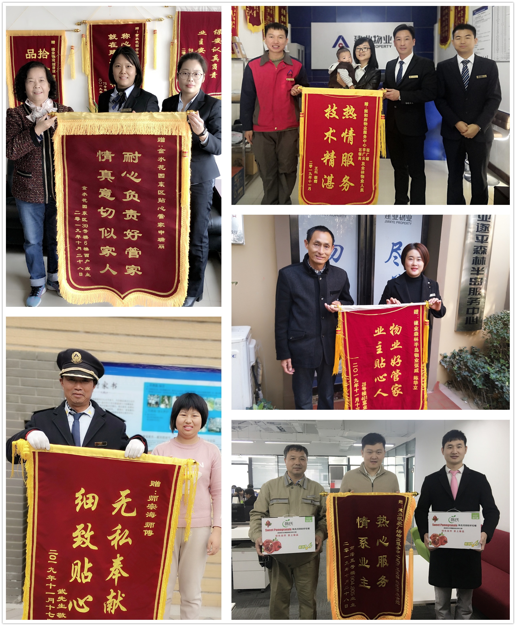 次日,業(yè)主特意來到物業(yè)辦公室,給幾位師傅送上錦旗和自己家鄉(xiāng)的石榴,以示謝意。