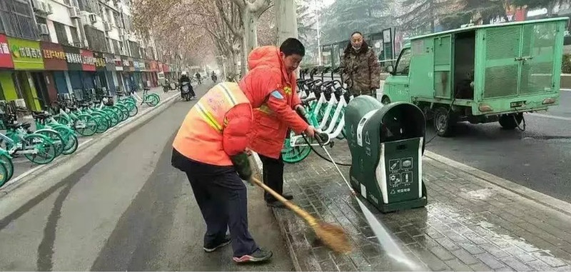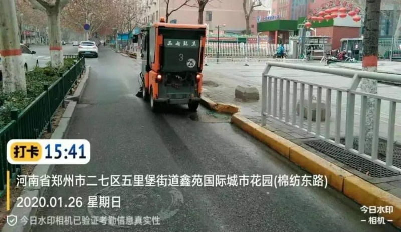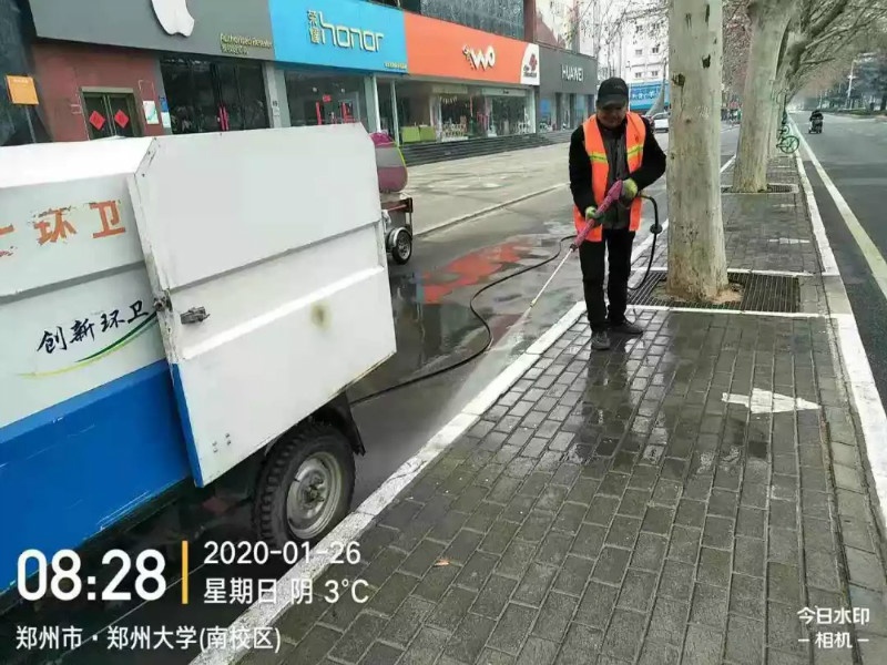 建業(yè)物業(yè)鄭州二七環(huán)衛(wèi)保潔春節(jié)期間每日出動(dòng)各類環(huán)衛(wèi)車輛40余臺(tái),清擦果皮箱380多個(gè),沖刷油污道路50余處,清理落葉3噸左右,沖刷道牙15000多米,清理廣告30處左右,清理衛(wèi)生死角40余處……集中清理、清洗道路,保障城市的潔凈衛(wèi)生,減少細(xì)菌病毒滋生,為防止疫情的發(fā)生貢獻(xiàn)自己的力量。
