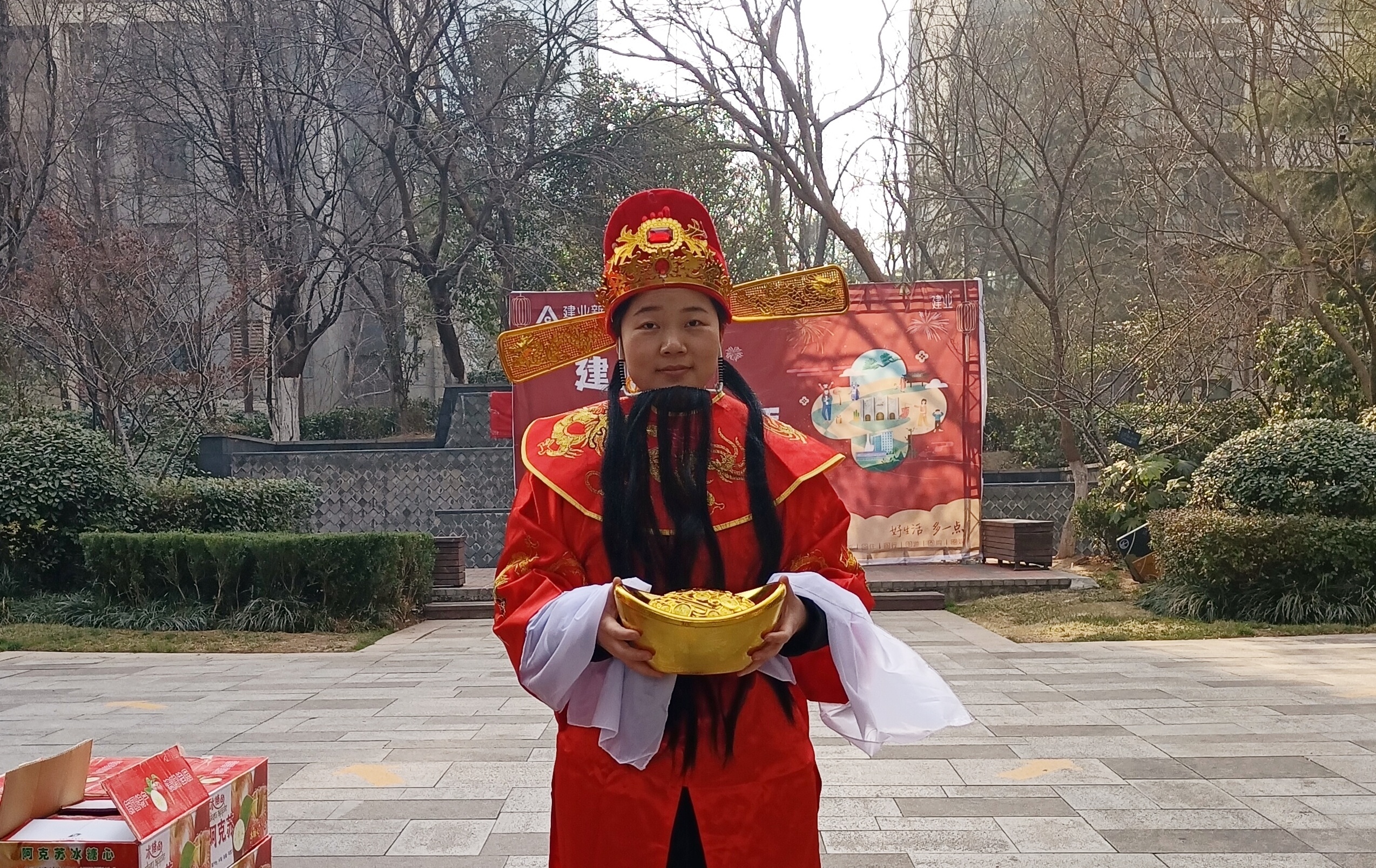 洛陽·建業(yè)世紀(jì)華陽C區(qū)管家李聰雅:今年大年三十和初一,我留守在工作崗位上幫業(yè)主貼春聯(lián)、發(fā)拜年信息、組織新年活動、和同事一起扮財神給業(yè)主拜年、派發(fā)糖果和小禮物……有趣的是,很多業(yè)主看到我們物業(yè)人在扮財神,紛紛要與我們合影,想要一起沾點(diǎn)喜氣,看到業(yè)主開心的模樣,我也感到很開心。雖然最重要的日子不能陪伴家人,但堅(jiān)守崗位依然可以喜氣洋洋過大年!