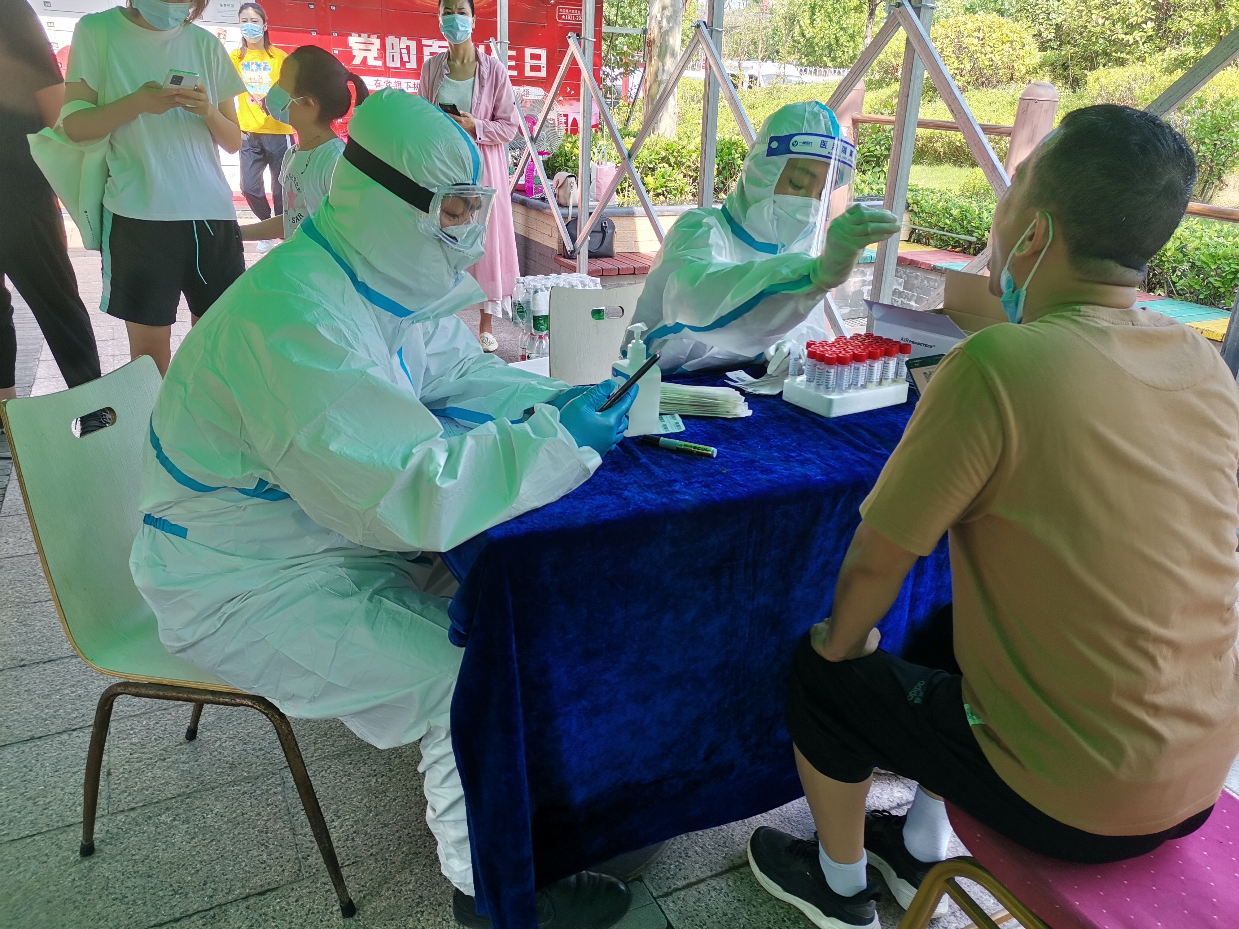正陽·建業(yè)城環(huán)境經(jīng)理鄭文偉協(xié)助業(yè)主做核酸檢測
