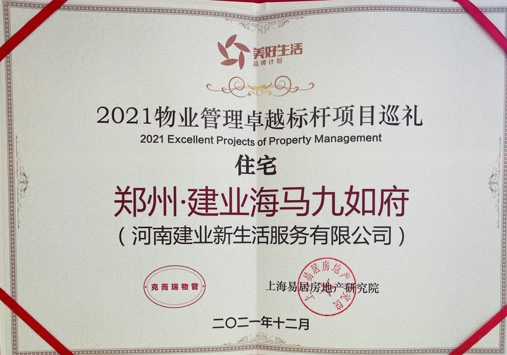 環(huán)境美、人文美、生活美、和諧美,鄭州·建業(yè)海馬九如府小區(qū)充分展示出業(yè)主樂享家門口之美的舒心、智慧生活。此次獲評全國項目標桿,彰顯了建業(yè)物業(yè)良好的管理水平,起到了定標立向、引領示范的作用。