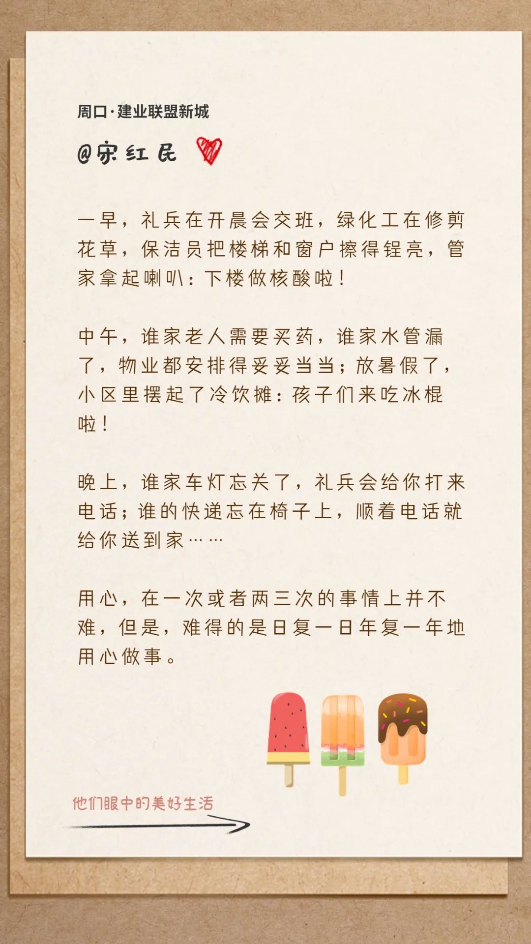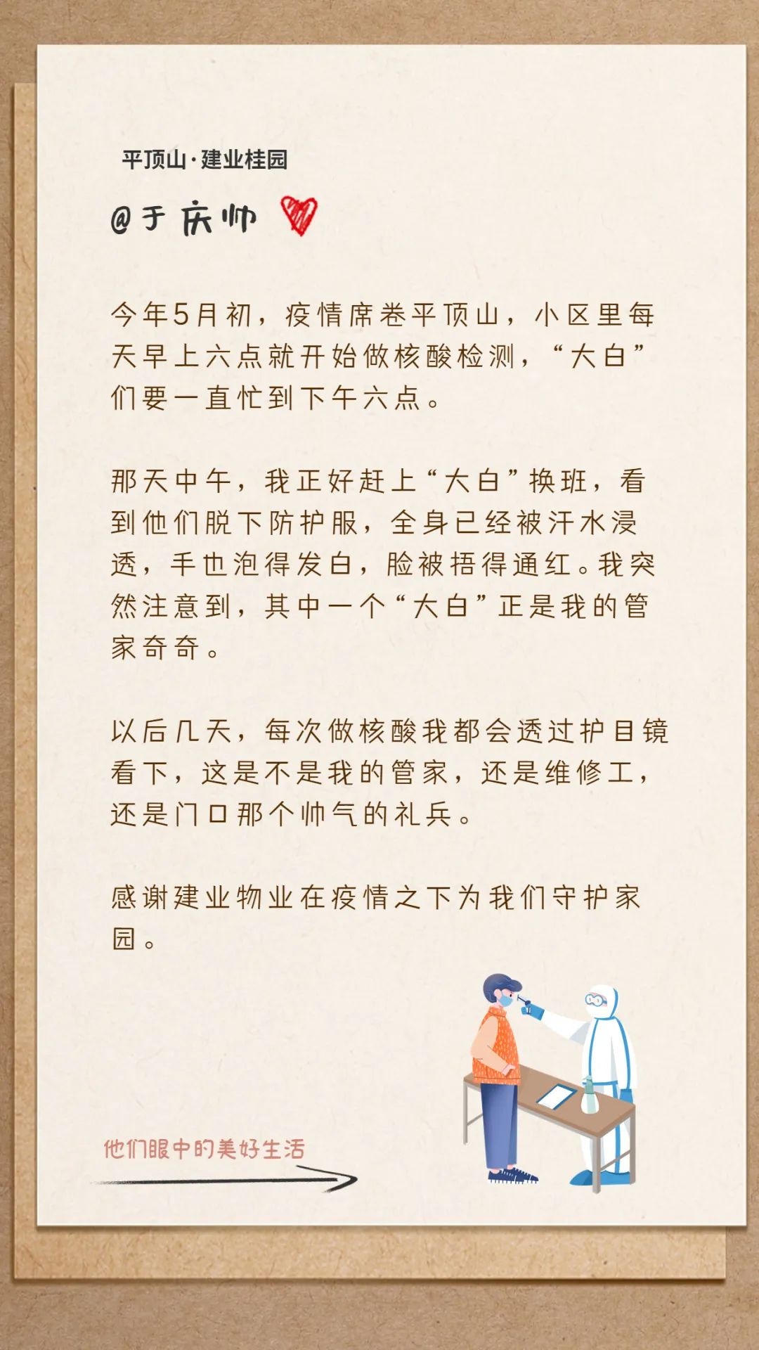 在通往美好生活的道路上,每個人都在用自己的方式努力著,奮斗著,建業(yè)物業(yè)人也將不斷以守護者、創(chuàng)造者、陪同者的身份,為業(yè)主的美好生活添磚加瓦、保駕護航。