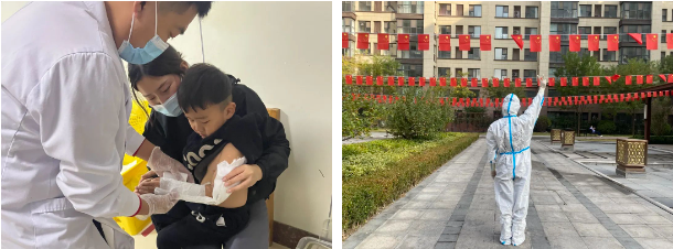 貼心管家王圓圓四歲的女兒正好這天過生日,一早就來到園區(qū)的她只能在工作間隙通過視頻給女兒唱生日歌。不僅如此,她的家里還有一個十個月大的孩子。貼心管家管丹丹和禮兵王連營因和醫(yī)護人員一同上門為確診病例進行核酸檢測,而不得不被集中隔離。管丹丹的兩個孩子獨自在家,最大的才只有十二歲;而王連營家中還有生病的妻子和年幼的孩子等待照顧。貼心管家劉娜平因兒子骨折,深夜去醫(yī)院處理,回家后不久就接到了小區(qū)核酸異常的消息,便毅然決然地返回工作崗位。