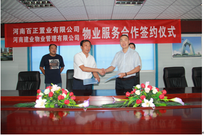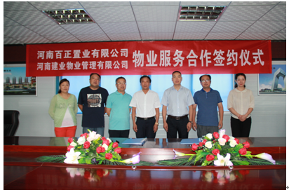 2016年6月29日河南建業(yè)物業(yè)管理有限公司與河南百正置業(yè)有限公司成功簽署物業(yè)顧問服務(wù)戰(zhàn)略合作協(xié)議。