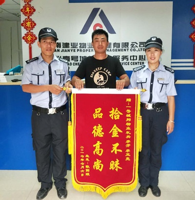 ——建業(yè)物業(yè)2017年6月份好人好事通稿 六月,天氣炎熱,酷暑難耐。物業(yè)人無(wú)不汗流浹背地工作在小區(qū)一線(xiàn)。建業(yè)物業(yè)全體員工不僅持續(xù)為業(yè)主打造舒適的人居環(huán)境,還積極主動(dòng)為業(yè)主提供幫助和服務(wù)驚喜,此間涌現(xiàn)了一件件感人至深的好人好事。6月,我們收到拾金不昧、技術(shù)高超、服務(wù)熱情、智勇擒賊、助人為樂(lè)等多種類(lèi)型的好人好事98例,其中錦旗32例,感謝信24例,電話(huà)表?yè)P(yáng)42例。 鏡頭一: 南陽(yáng)·建業(yè)森林半島某業(yè)主因公出差,但家中的老母親無(wú)人照顧,無(wú)奈之時(shí)想到了工作踏實(shí)負(fù)責(zé)的貼心管家彭陽(yáng)。彭陽(yáng)收到業(yè)主的請(qǐng)求后爽快答應(yīng),叮囑業(yè)主放心工作,保證幫業(yè)主照看好老人。 于是,彭陽(yáng)把照顧老人當(dāng)成了自己另一項(xiàng)日常工作,不僅每天都去